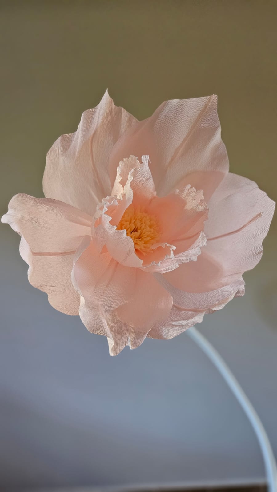 Flor gigante confeccionada em papel crepom italiano ideal para decoração de festas, vitrines e ambientes.