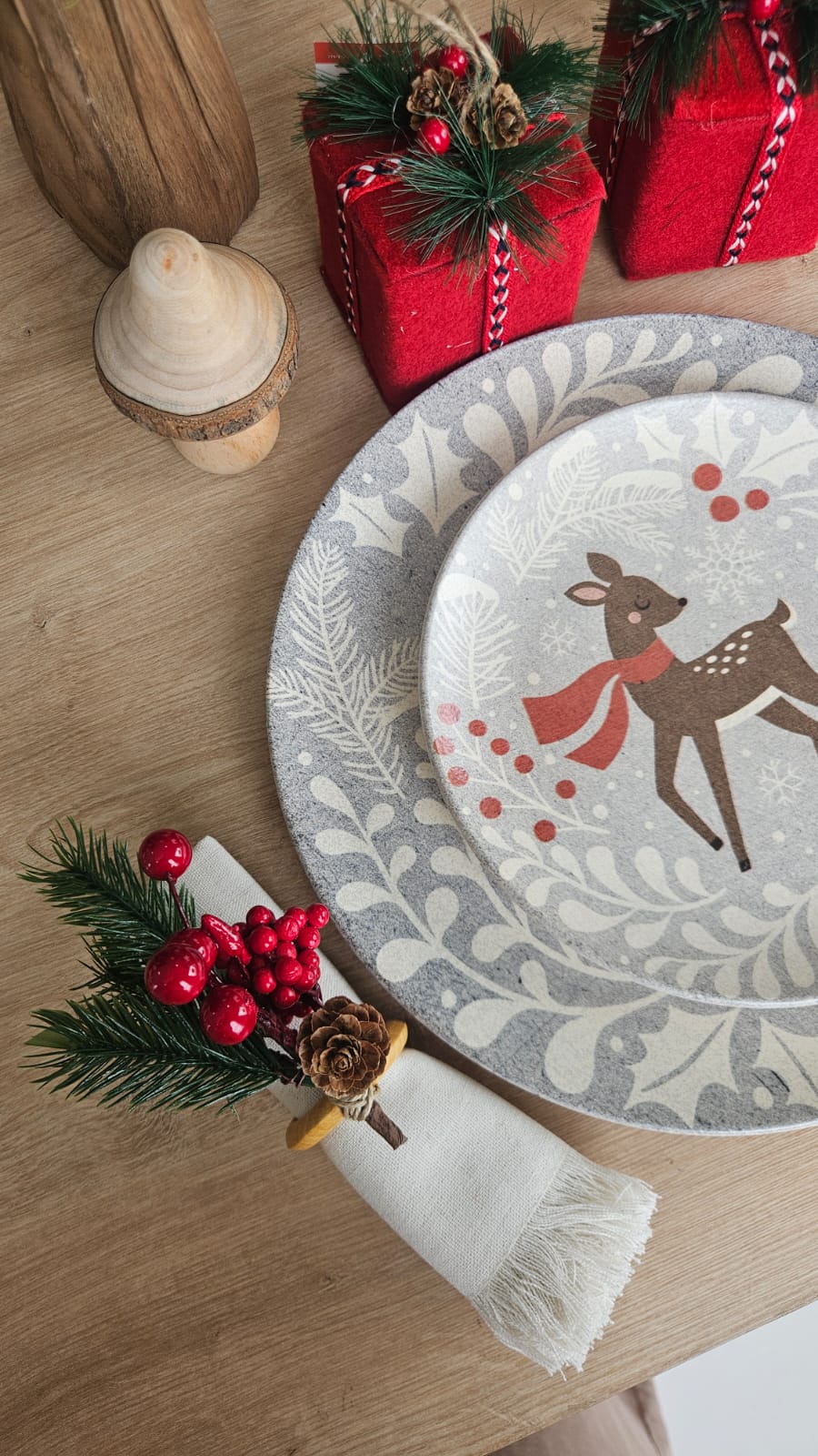 ← VoltarPorta guardanapo confeccionado com ramo de frutas vermelhas artificial e acabamento em argola de madeira e fio rústico.